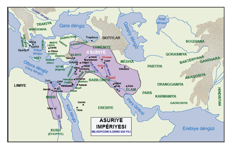 ■ 11 Andin Asuriyening padishahi Israillarni Asuriyege élip kétip, ularni Xalahda, Gozandiki Xabor deryasining boylirida we Médialarning sheherliride makanlashturdi.