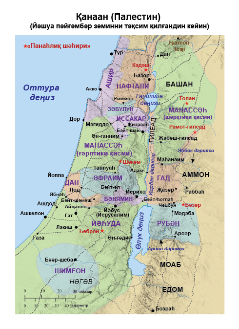13:14 «... Муса Лавий қәбилисигә һеч мирас зиминни бәрмигән» — ибраний тилида «... у Лавий қәбилисигә һеч мирас зиминни бәрмигән».