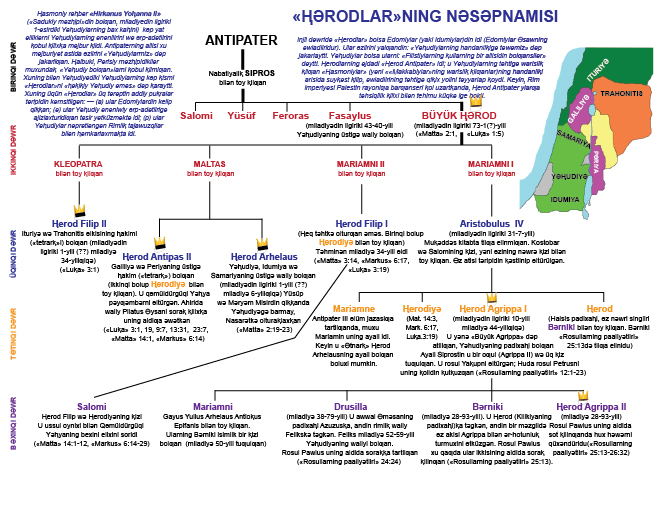 □22:16 «Ⱨerod padixaⱨning tǝrǝpdarliri» — Ⱨerod padixaⱨ Rim imperiyǝsi tǝripidin tǝyinlǝngǝn bolup, u Yǝⱨudiy bolmiƣaqⱪa Yǝⱨudiylarning kɵpinqisi uningƣa intayin ɵq idi. Xundaⱪ bolƣini bilǝn ɵz mǝnpǝitini kɵzlǝydiƣan, uni ⱪollaydiƣan «Ⱨerod tǝrǝpdarliri» bar idi. «Ⱨerodlar» toƣruluⱪ «ⱪoxumqǝ sɵz»imizni kɵrüng.