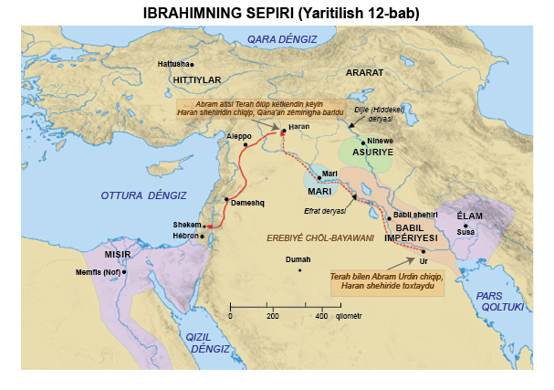 □12:10 «chüshti» —Ibraniylargha nisbeten ular Xudaning «muqeddes zémin»i bolghan Qanaan (Pelestin)din chiqip herqaysi jaylargha (ularning jughrapiyilik orni égiz bolsun, pes bolsun) mangsa, «chüshüsh» dégen péil bilen ipadilinidu; shuningdek herqaysi yerdin Pelestin’ge qarap mangsa, «chiqish» dégen péil bilen ipadilinidu. «Abram Misirgha chüshti» — Abram (Ibrahim)ning Misirgha chüshüshi toghruluq «qoshumche söz»imiz («Ibrahimning hayatidin alidighan sawaqlar we ibretler»)de azraq toxtilimiz.