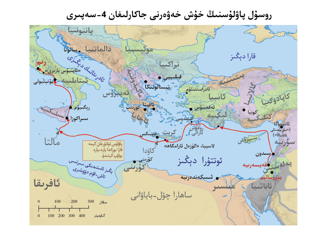 ■ 4 بىز ئۇ يەردىن يەنە دېڭىزغا چىقتۇق. شاماللار قېرىشقاندەك قارشى تەرىپىمىزدىن چىققانلىقى ئۈچۈن، سىپرۇس ئارىلىنىڭ شامالغا دالدا تەرىپى بىلەن ماڭدۇق.