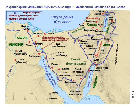 Лекин Исраиллар болса деңизниң оттурисидин қуруқ йәрдин меңип өтүп кәтти».